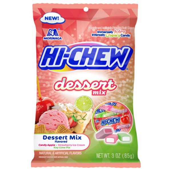 NEW ITEMNEW ITEM HI-CHEW™ Dessert Mix Peg Bag 3oz 6ct SKU: 104324 PACK SIZE: 6 count case Please log in to see price or purchase this item Quantity discounts available QuantityPrice (0) No Reviews yet Product Description Hi-Chew Candy Flavored Strawberry Ice Cream, Key Lime Pie, Candy Apple.Full Case Only Additional Info & Specs 6 count case Product DescriptionAdditional Info & SpecsBack Hi-Chew Candy Flavored Strawberry Ice Cream, Key Lime Pie, Candy Apple.Full Case OnlyBack6 count caseINNERPACKS PER CASE: 1CASE GROSS WEIGHT: 1.5 lbUNIT UPC: 857983004293CASE GTIN: 10857983004290UNIT DIMENSIONS: 7.48 x 5 X 1.57CASE DIMENSIONS: 8.25 x 5.5 x 6.7PALLET TI X HI: 39 X 7 Reviews 0 BackRatings & ReviewsNo reviews availableBe the first to Write a Review